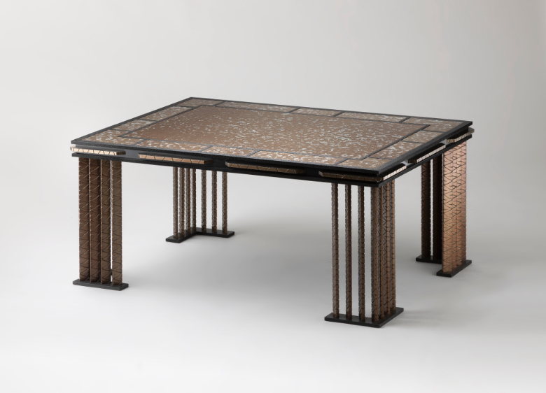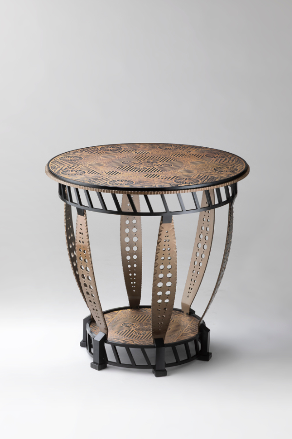 Console acier et cuivre émaillé