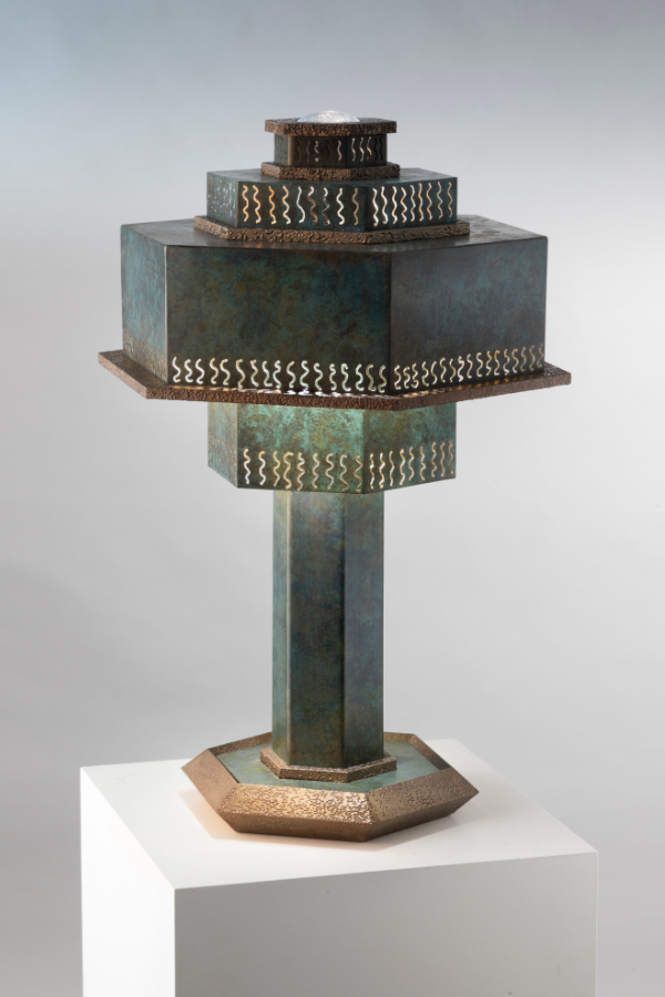 Console en acier et cuivre émaillé